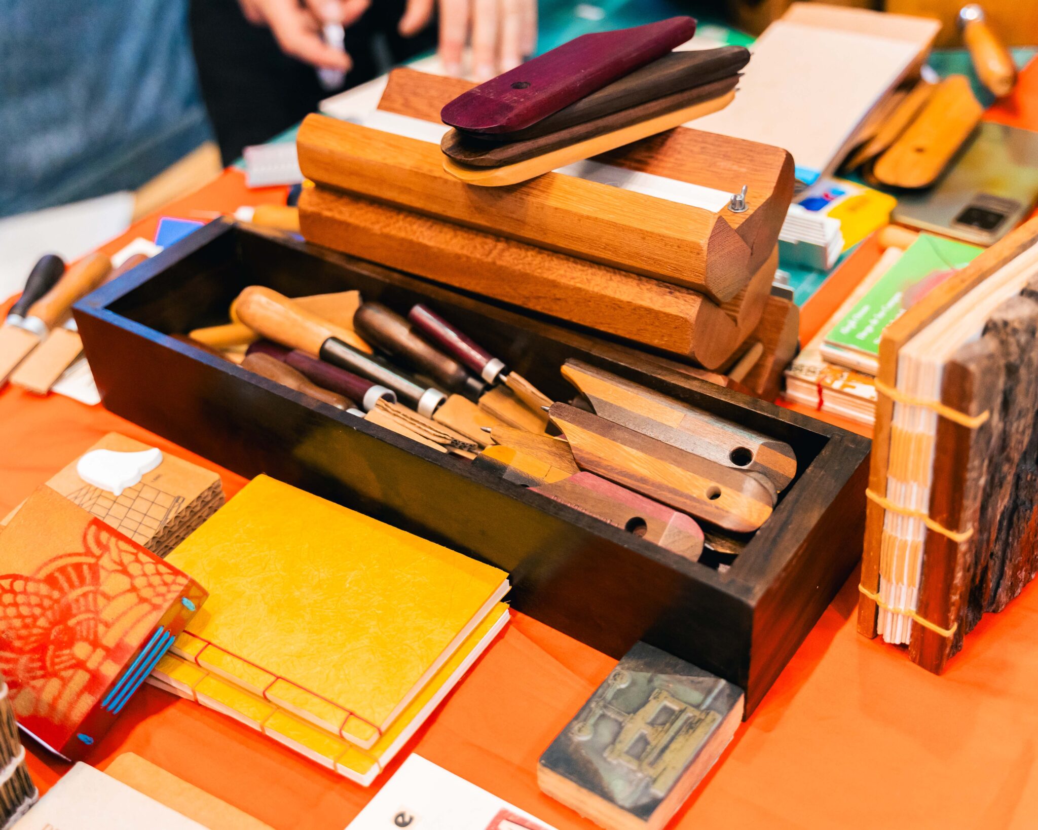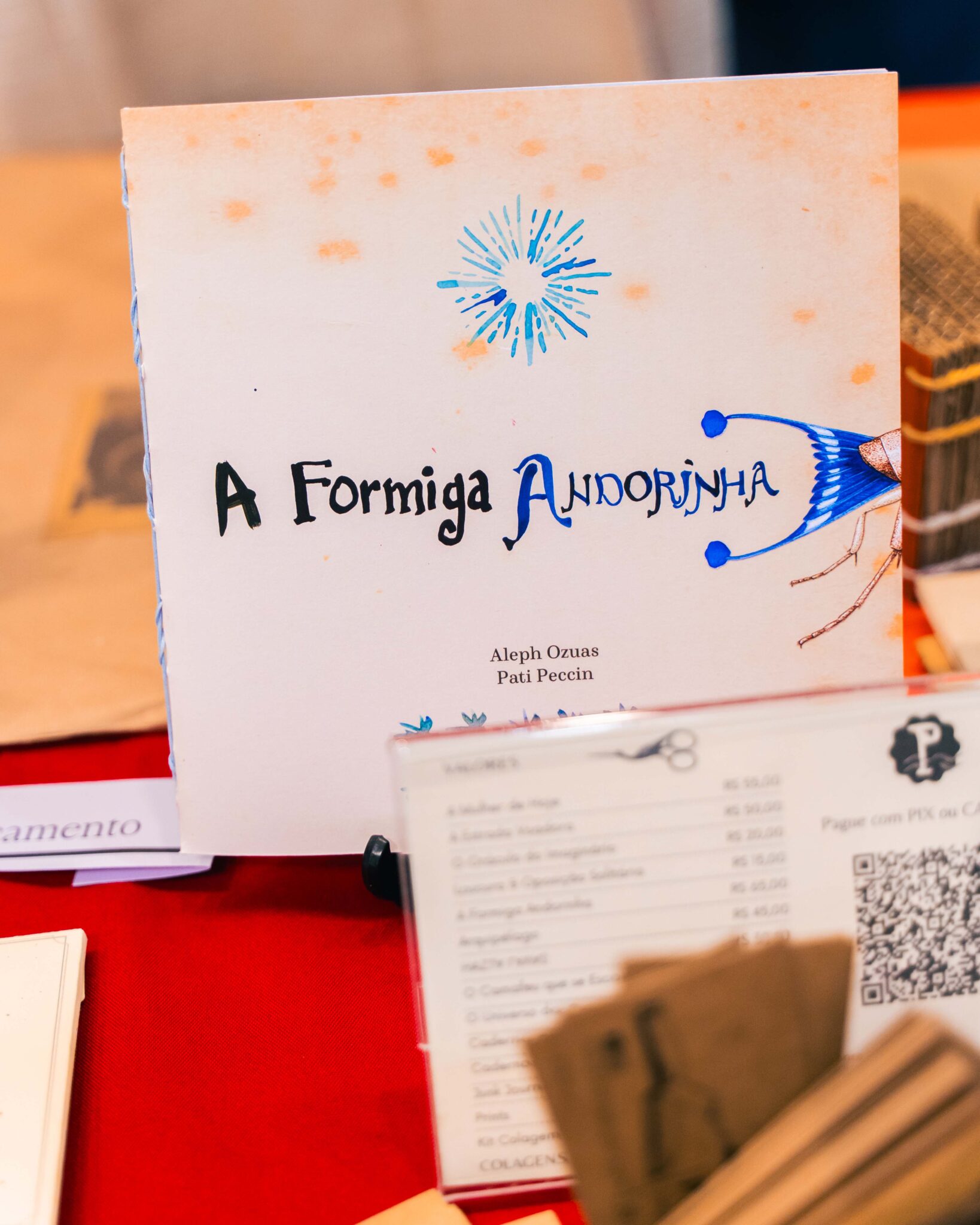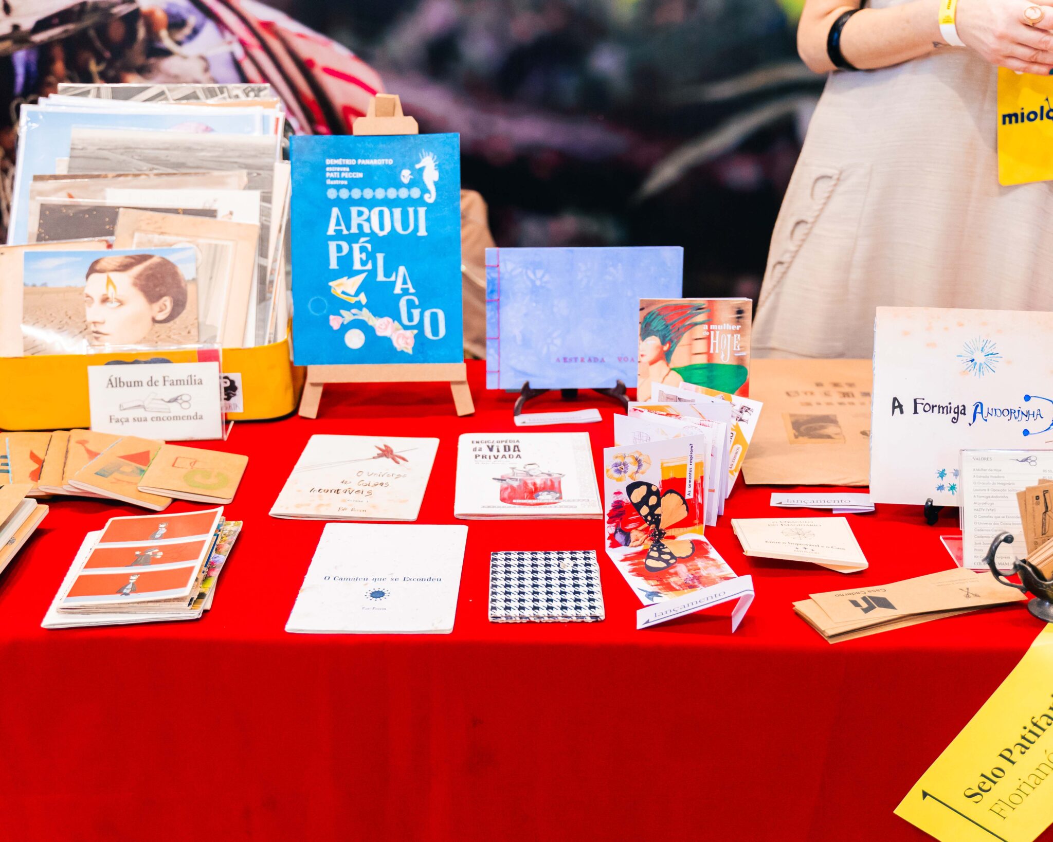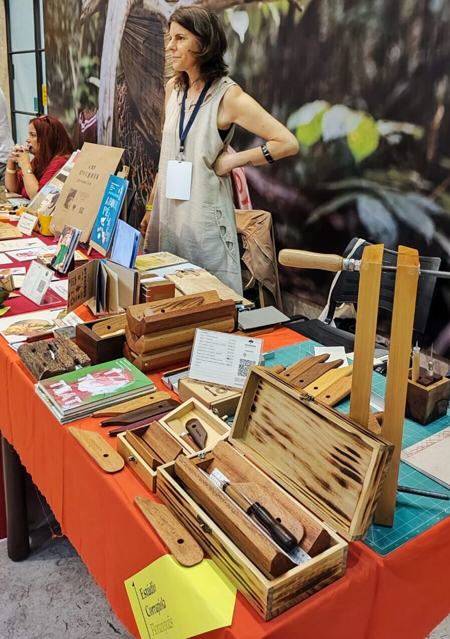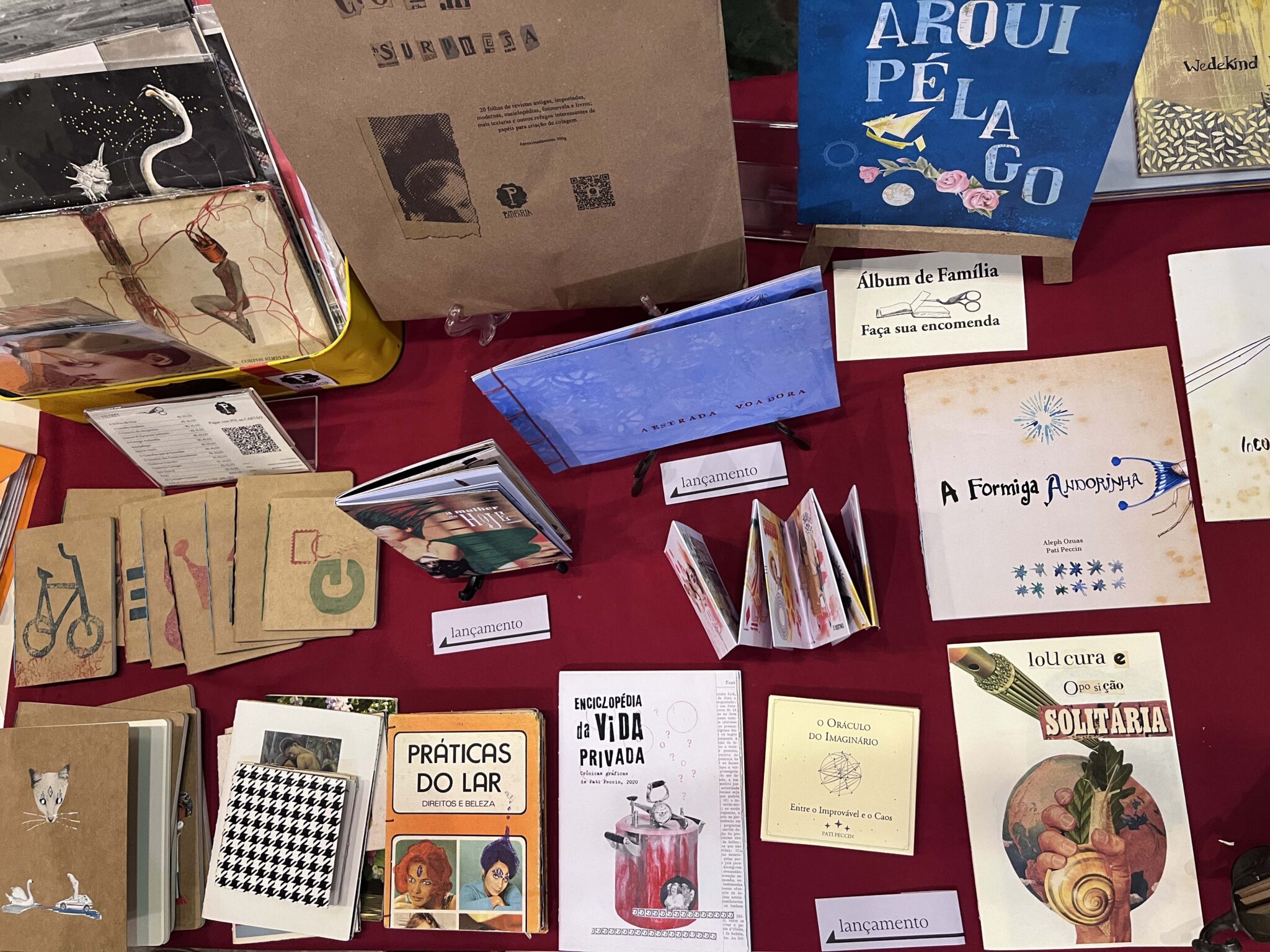 Um dos grandes destaques foi a mostra de lançamentos, com obras que exploraram diferentes técnicas e linguagens. O Selo Patifaria, da artista Pati Peccin, e o Estúdio Corrupiola, de Aleph Ozuas, parceiro na produção e encadernação, apresentaram suas novas criações, que despertaram a curiosidade e o encantamento do público: