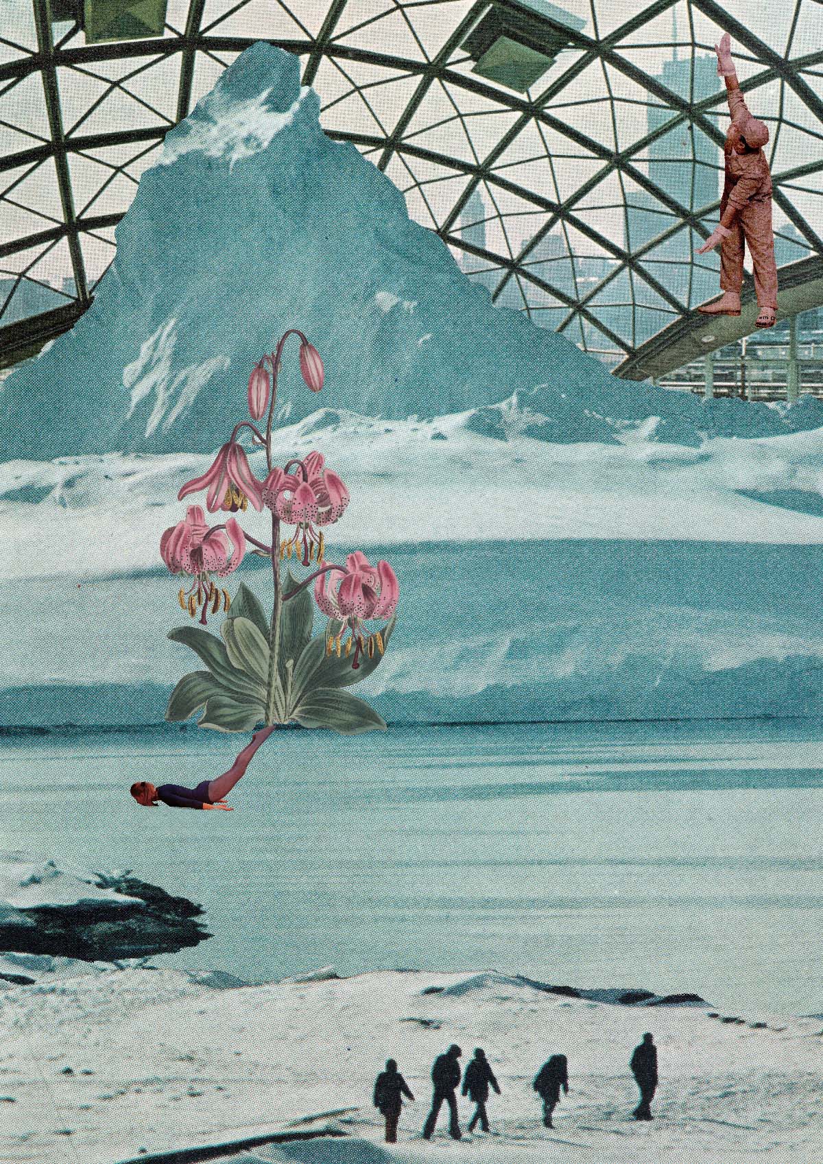 Enquanto o sol não vem – Colagem digital com imagens escaneadas de revistas antigas.